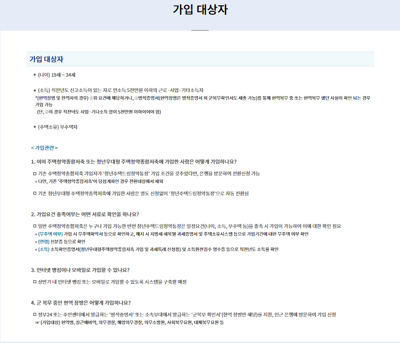 - 기존 청약통장 보유자는 간단한 전환 신청 가능